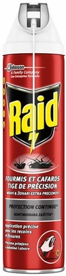 Raid® със своята специална формула убива за секунди хлебарките и техните яйца, като осигурява дълготрайна защита в продължение на до 4 седмици. Подходящ за употреба срещу други пълзящи насекоми като мравки, паяци, стоножки и др. Ароматизира приятно въздуха